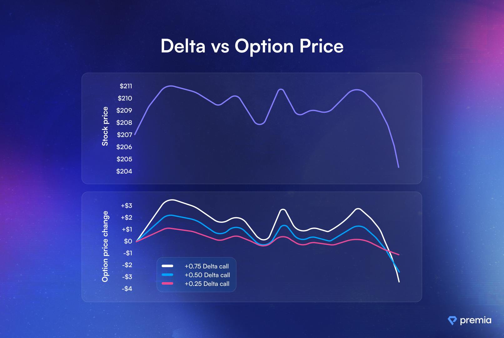 Delta represents an option's sensitivity to changes in the price of the underlying cryptocurrency.